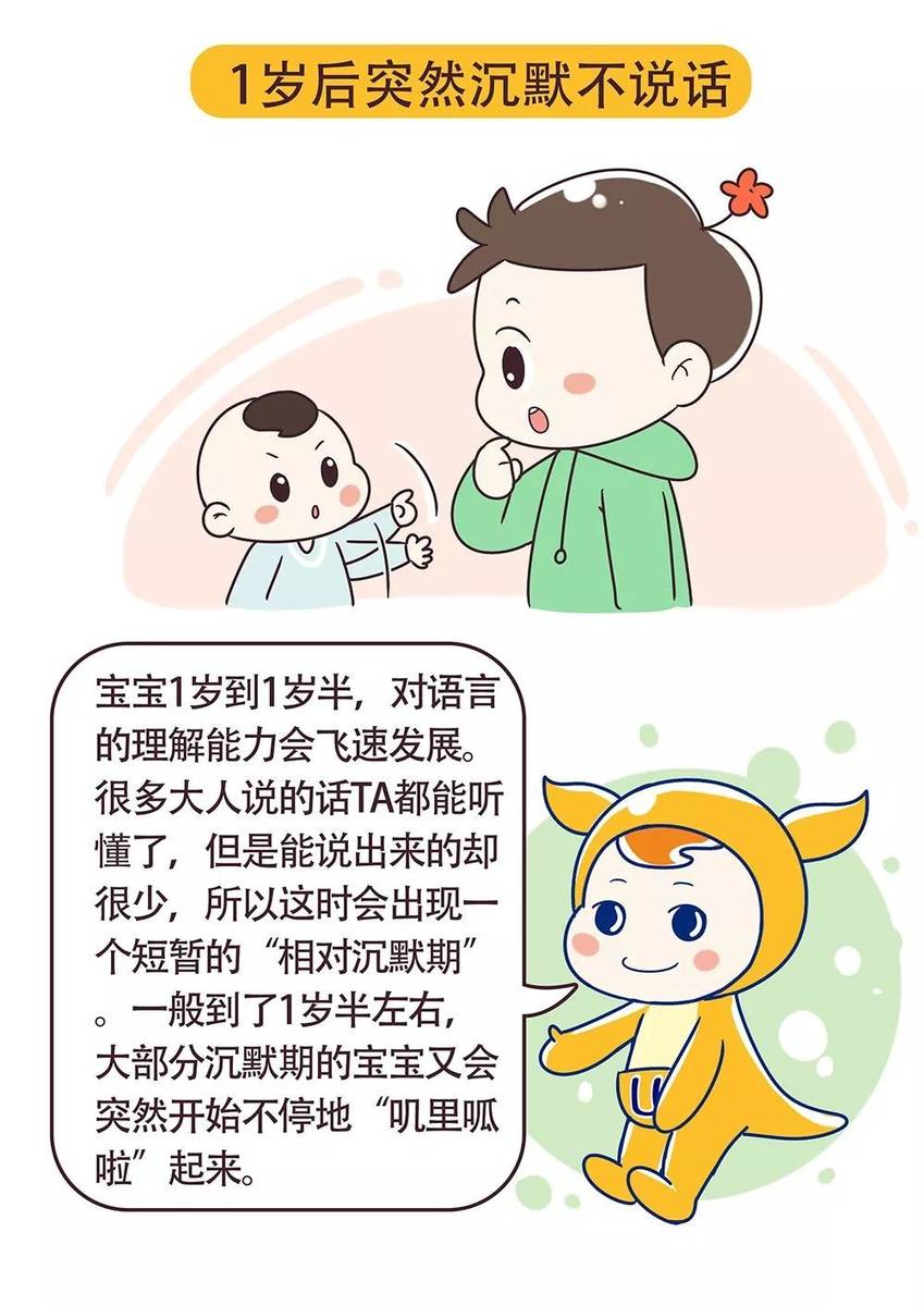 4、智力發(fā)育遲緩:極少數(shù)情況下,寶寶不說話可能與智力發(fā)育遲緩有關(guān),如有疑慮,請及時帶寶寶就醫(yī)檢查。