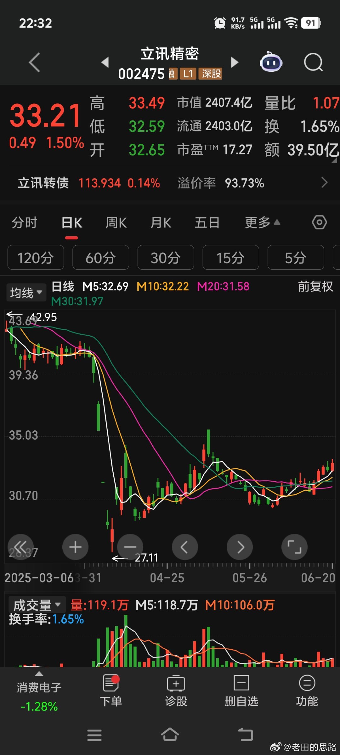 立訊精密股份股票具有較高的投資價(jià)值和潛力,公司經(jīng)營狀況良好,業(yè)績穩(wěn)步增長;公司在電子制造業(yè)領(lǐng)域具有舉足輕重的地位,具有較強(qiáng)的市場競爭力和品牌影響力;第三,公司注重技術(shù)創(chuàng)新和研發(fā)投入,具備持續(xù)發(fā)展的能力;全球電子產(chǎn)業(yè)的繁榮和新興市場的快速發(fā)展為立訊精密股份提供了廣闊的發(fā)展空間和機(jī)遇。
