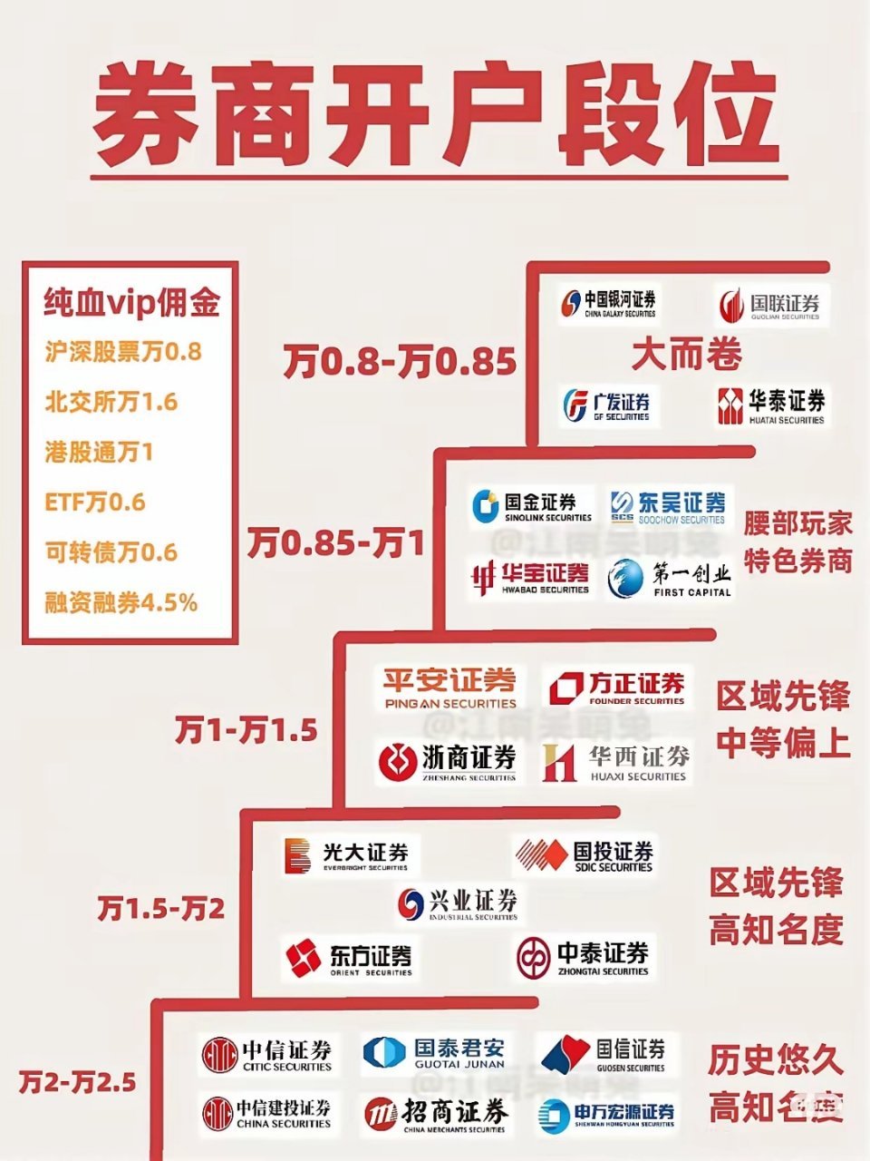 1、傭金費(fèi)用:傭金是投資者最關(guān)注的因素之一,不同券商的傭金標(biāo)準(zhǔn)不同,投資者需要根據(jù)自己的投資需求和資金規(guī)模來選擇適合的券商。