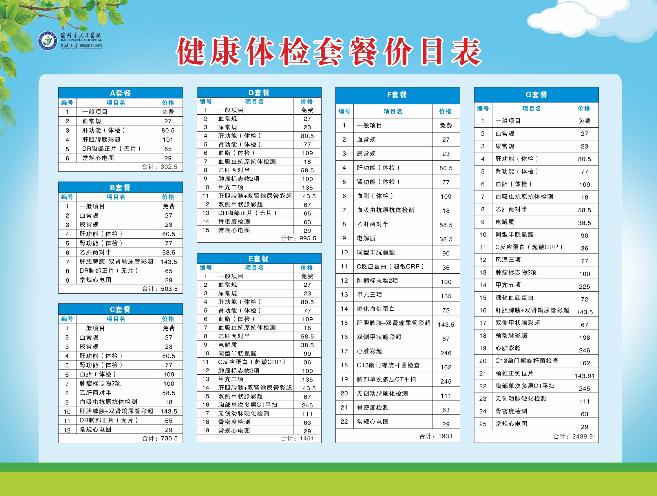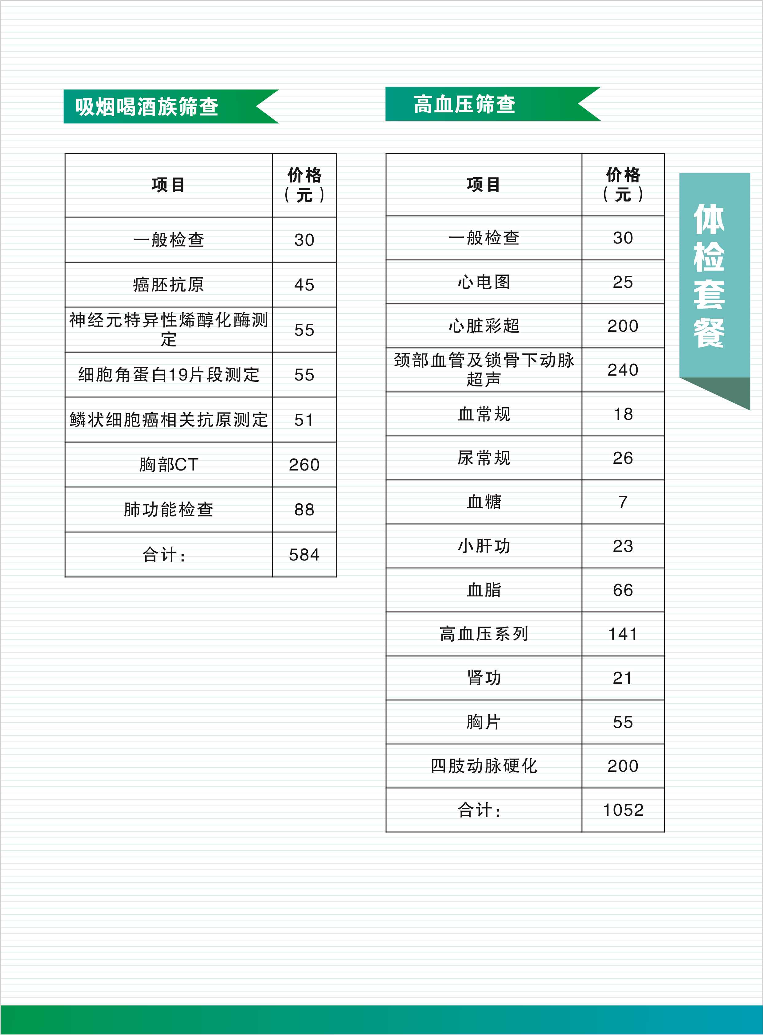 1. 常規(guī)體檢套餐項目及價格