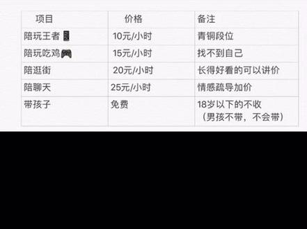 明星陪玩的價格因明星知名度、人氣、游戲類型等因素而異,以下是一份明星陪玩的價目表,僅供參考: