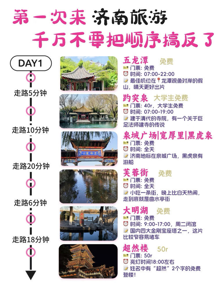 5、濟南的公共交通發(fā)達,但景點之間距離較遠,建議選擇合適的交通工具,如出租車、公交車或共享單車等。